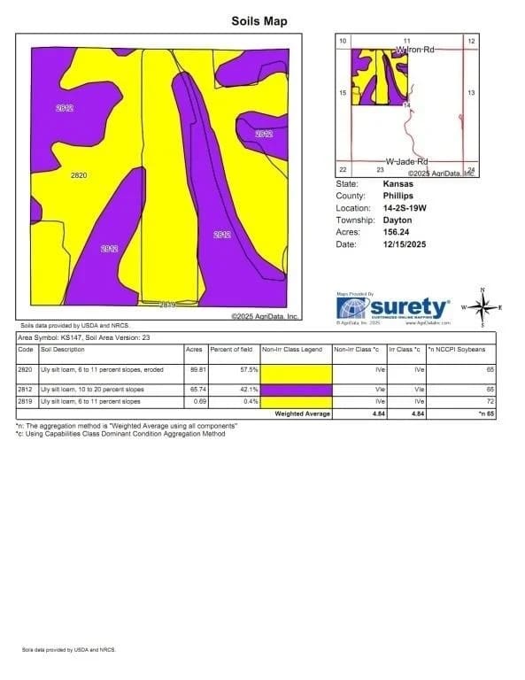 LEGAL DESCRIPTION: The Northwest Quarter (NW1/4), of Section Fourteen (14), Township Two (2) South, Range Nineteen (19) West of the Sixth P.M., Phillips County, Kansas being 156.24 acres more or less.