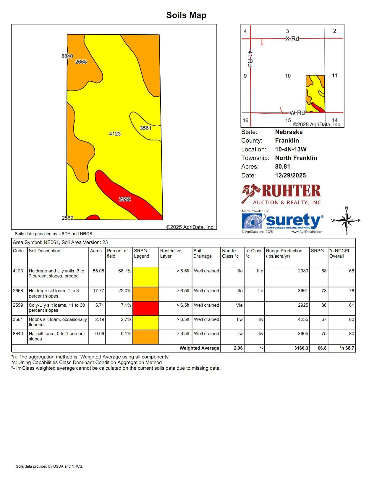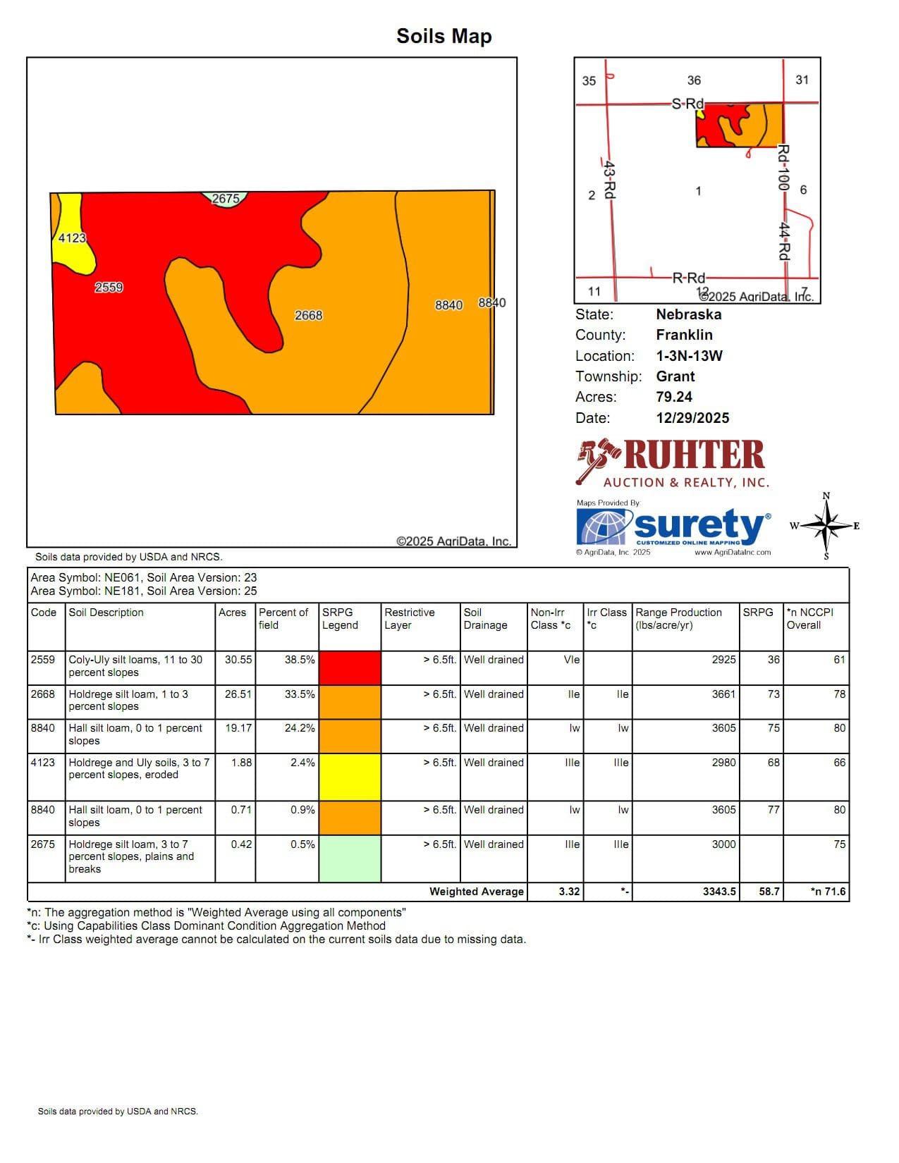 This online-only auction offers two separate tracts of highly productive non-irrigated farmland totaling approximately 160.05 acres in Franklin County, Nebraska, near Campbell. Each tract features a high percentage of tillable cropland with quality soils ideal for dryland row-crop production. Both parcels are well-suited for continued agricultural use and will be sold individually—not as a combined lot. Agents for Ruhter Auction & Realty will be at The Campbell Community Room at 12pm auction day for assistance. This auction is set to close at 2:00pm via soft close.