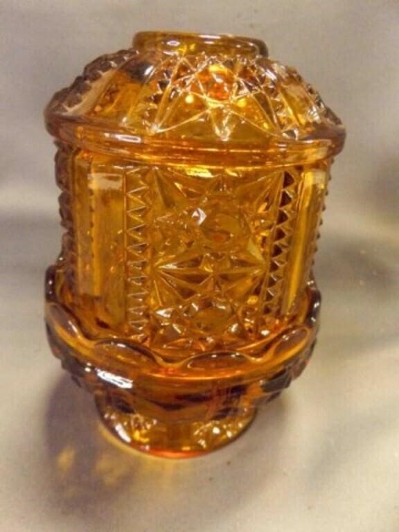 - Vintage Indiana Glass Stars and Bars Amber Fairy