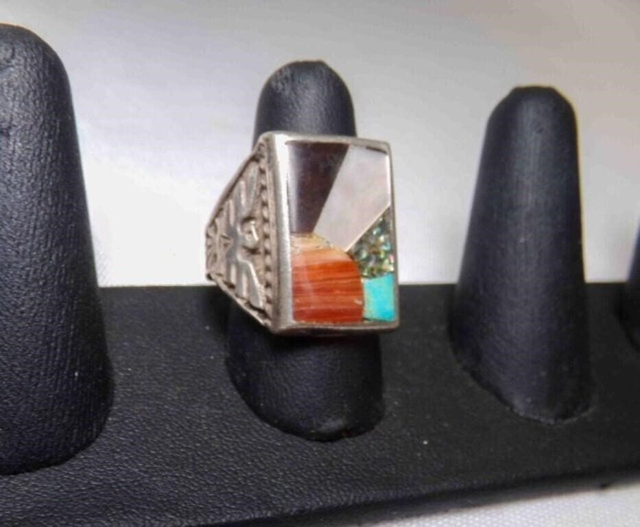 - Native American Zuni Sterling Silver Sunrise Inlay