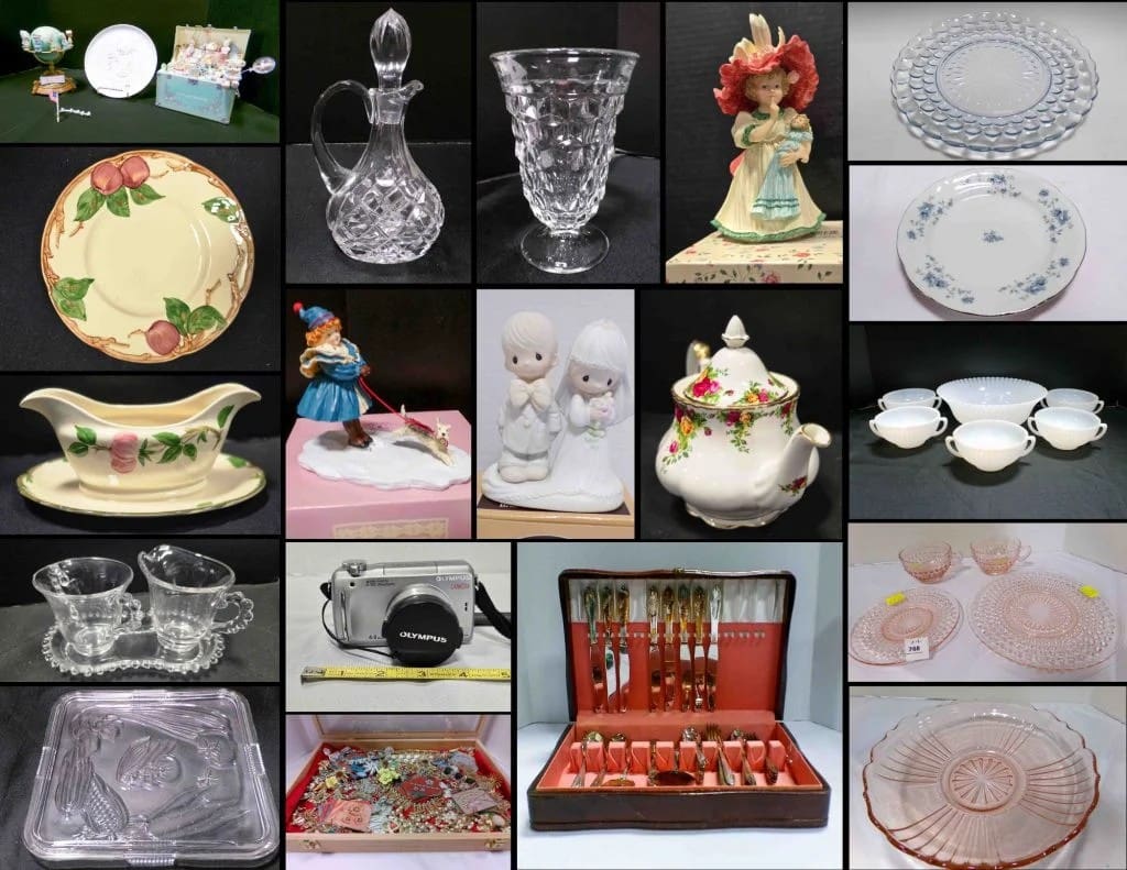 Fostoria – Candlewick – Tiara – Haviland – Precious Moments – Maud Humphrey Bogart – Cameras – Petalware – Depression Glass – Desert Rose