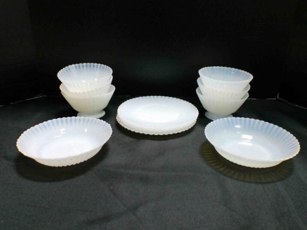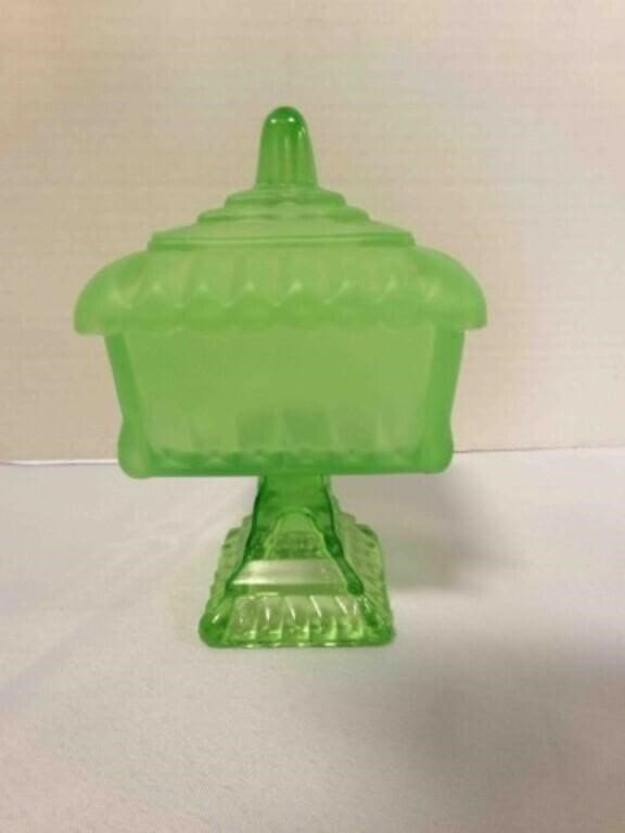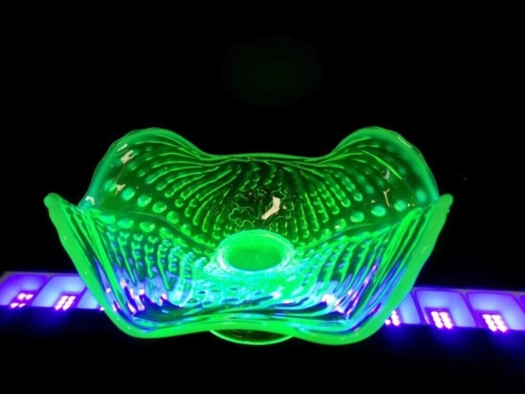 - Uranium Vaseline Glass Ruffled Oyster & Pearls