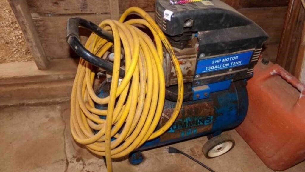 - CUMMINS AIR COMPRESSOR, 2 HP, 13 GAL W/HOSE
