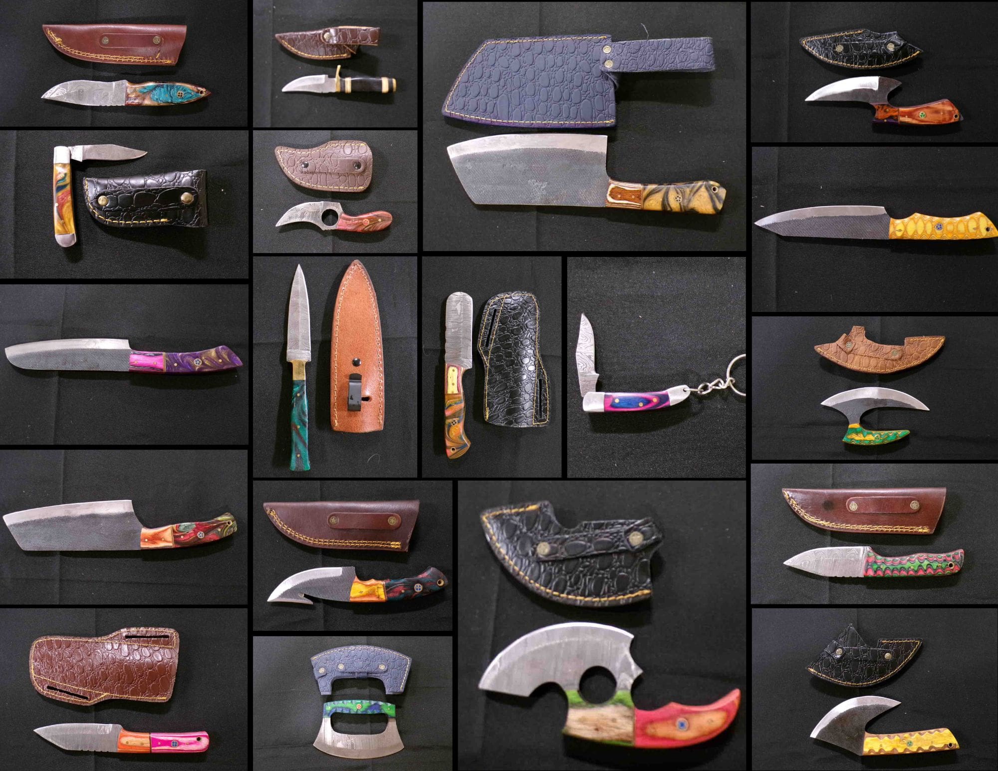 Damascus Steel – Pocket Knives – Cleavers – Serrated Blades- Daggers – Ulu – Key Chain Knives – Fixed Blades – Leather Sheaths