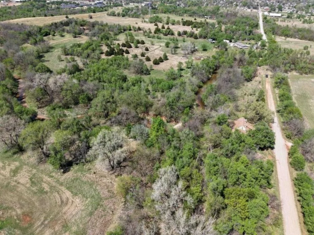 Discover the perfect blend of privacy, natural beauty, and convenience with this scenic 5-acre property ideally located on the south side of Enid, Oklahoma. Tucked among mature trees, the property features Boggy Creek winding through, creating a picturesque setting with excellent recreational opportunities and abundant wildlife.