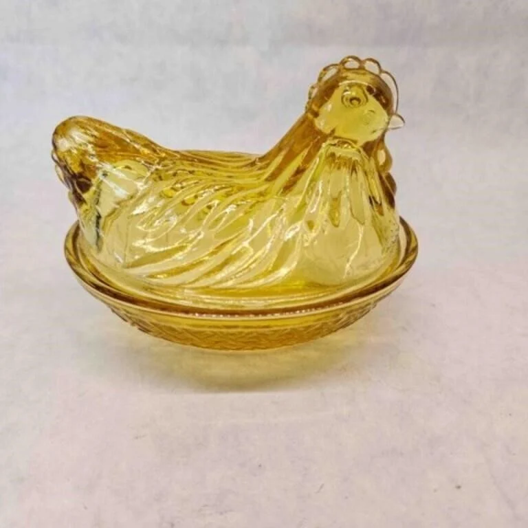 - Hen Chicken on Nest-Amber Glass
