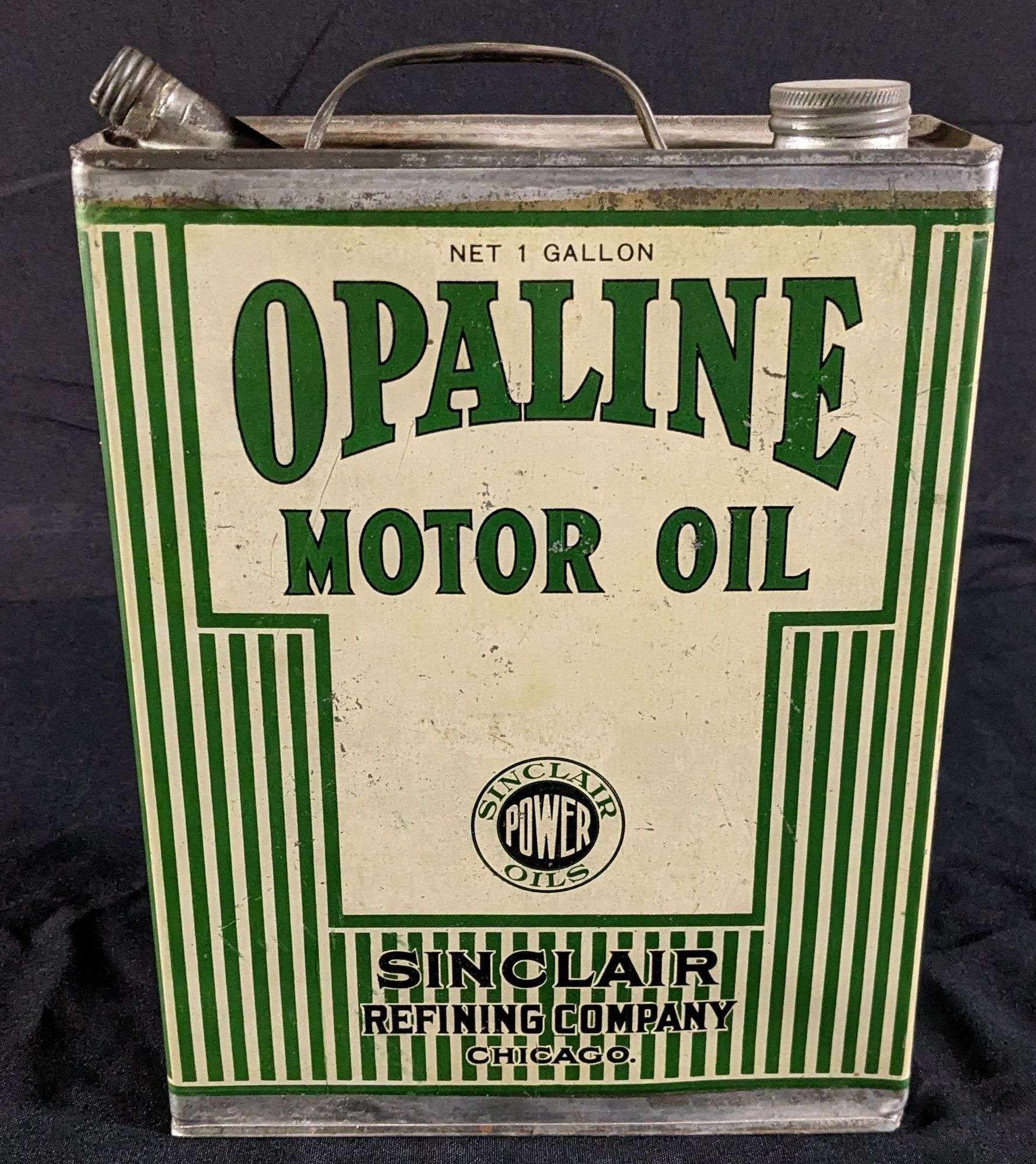 - EARLY 1 GAL OIL CAN SINCLAIR POWER OILS OPALINE MOTOR OIL
