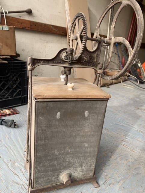 - Blakeman & Dobson Favorite hand crank wood barrel butter churn on stand