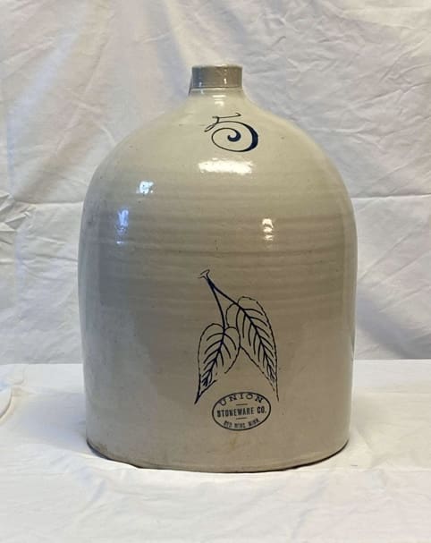 2 – 3 Gal. birch leaf crocks w/ ski marking;