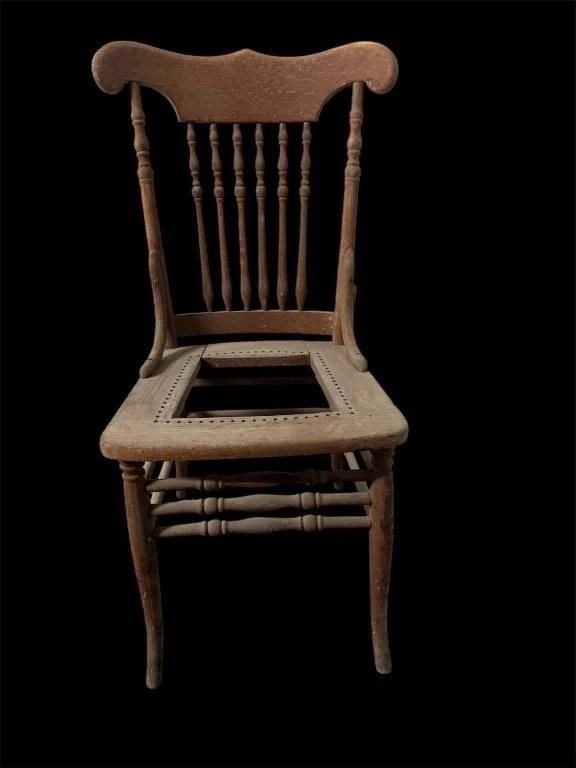 - Antique pressed-back oak chair