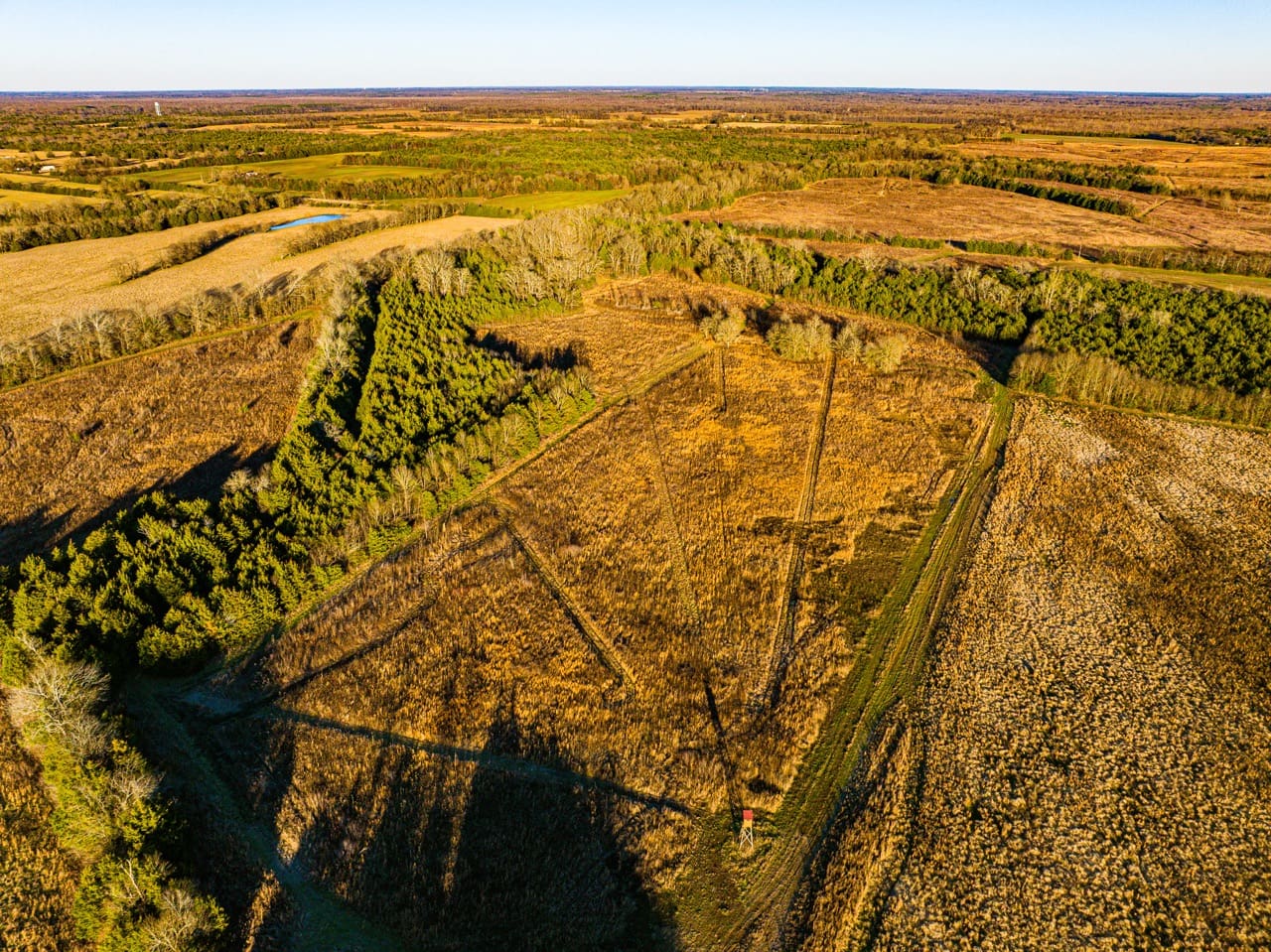 This tract has been meticulously developed as a highly managed hunting property, with mixed timber including mature hardwoods, strategically placed food plots, and a thoughtful improvement layout designed to enhance wildlife movement and huntability. The surrounding area is well known for producing trophy-class whitetail deer, along with strong populations of turkey and upland game, supported by long-term habitat continuity.