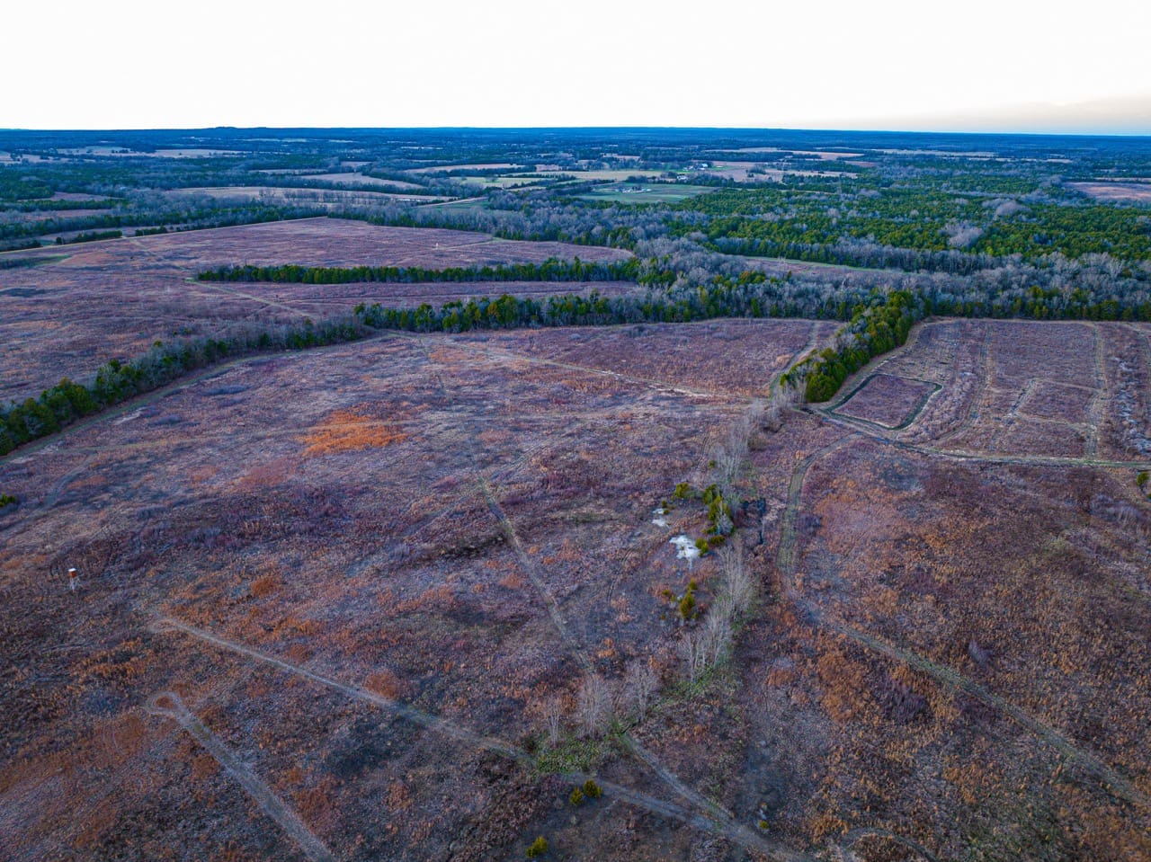 The property has been intensively managed with a strong emphasis on wild quail recruitment and retention, utilizing prescribed burning, native grass systems, edge habitat development, and food plot integration. These practices have created high-quality brood habitat and balanced ground cover while simultaneously enhancing overall land health and forage response. The result is a landscape that supports strong populations of quail, turkey, and whitetail deer, with trophy-class deer well documented throughout the area. Consistent management philosophies across neighboring ownerships further reinforce the long-term quality and stability of wildlife habitat.
