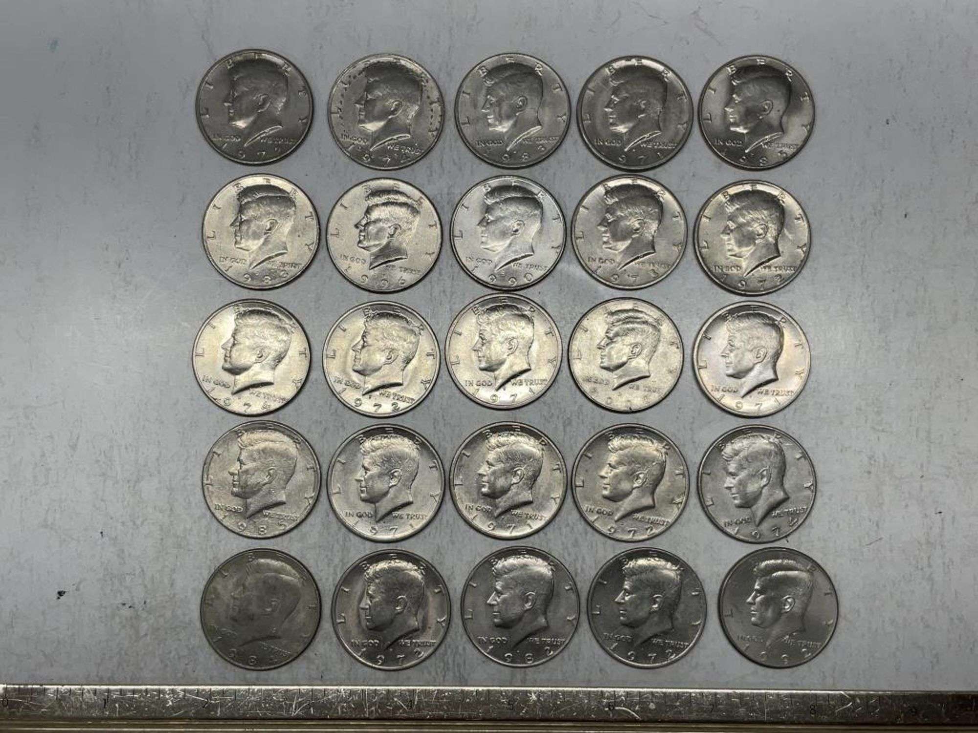 Morgan and Peace dollars, Barber/Walking Liberty/Franklin/Kennedy halves, silver quarters and dimes.