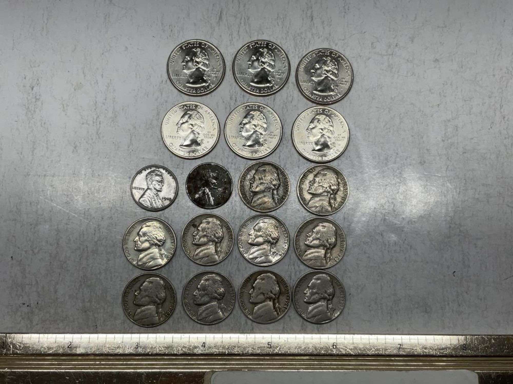Indian Head and Flying Eagle cents, Shield/V/Buffalo nickels, and Standing/Seated Liberty quarters.