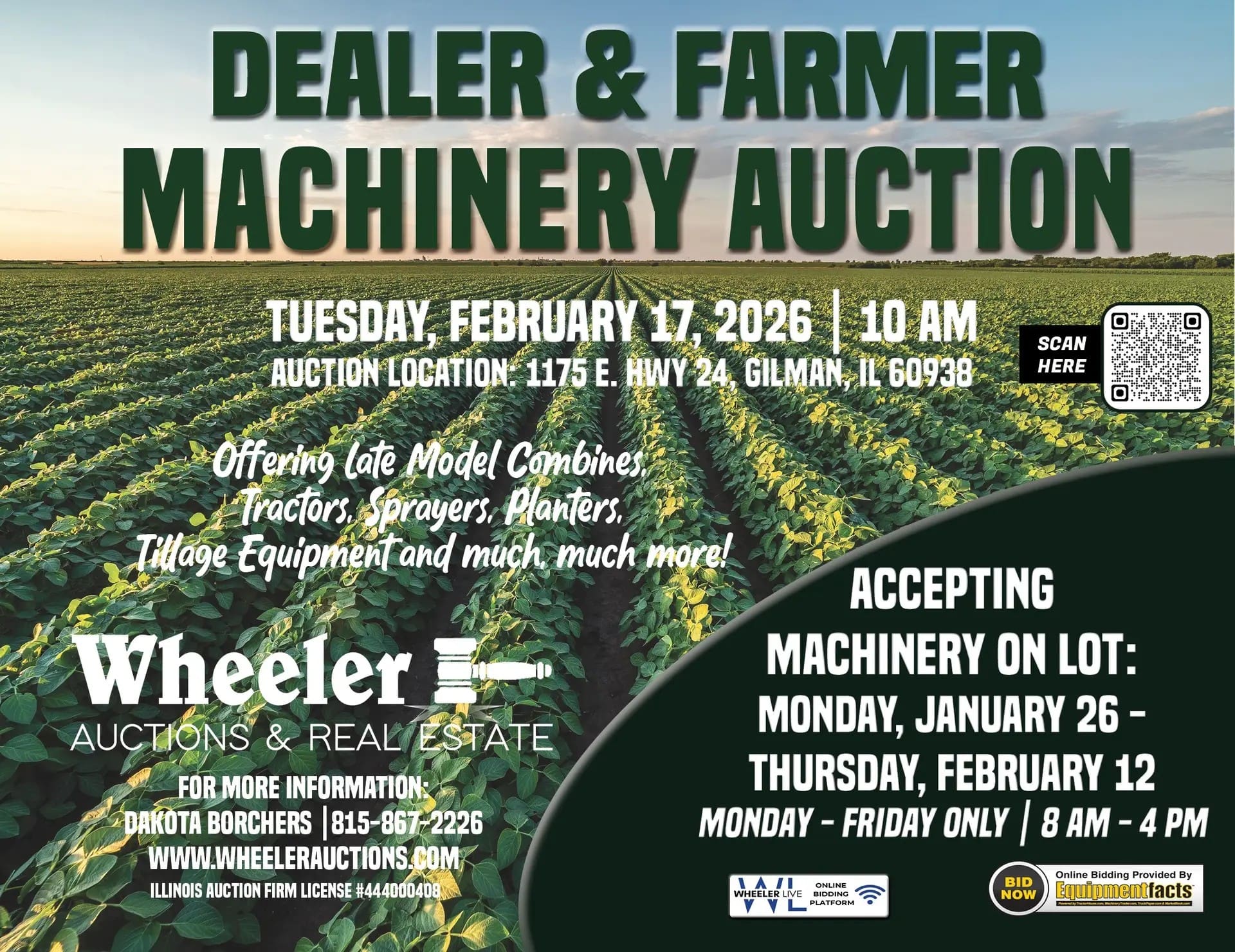 Offering late model combines, tractors, sprayers, planters, tillage equipment, and much more.