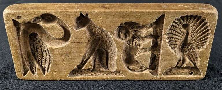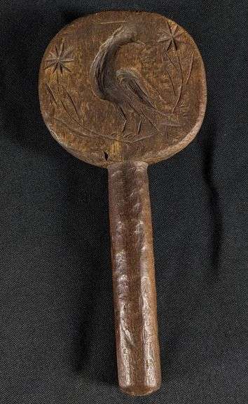 - ANTIQUE PRIMITIVE CARVED WOOD BUTTER PRINT MOLD STAMP BIRD DESIGN