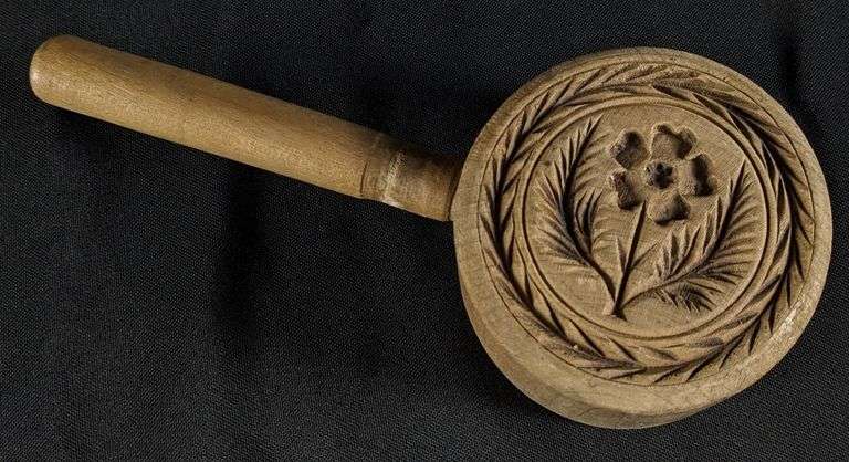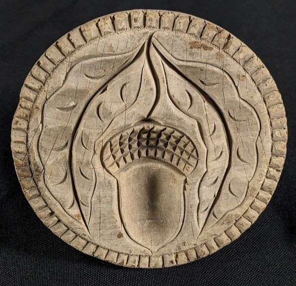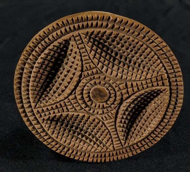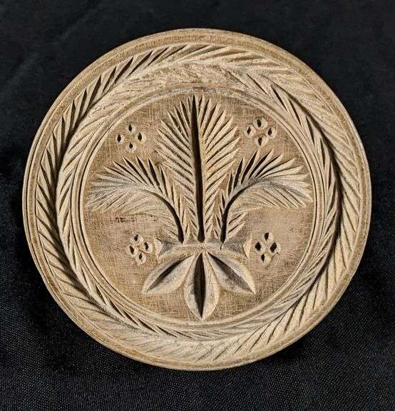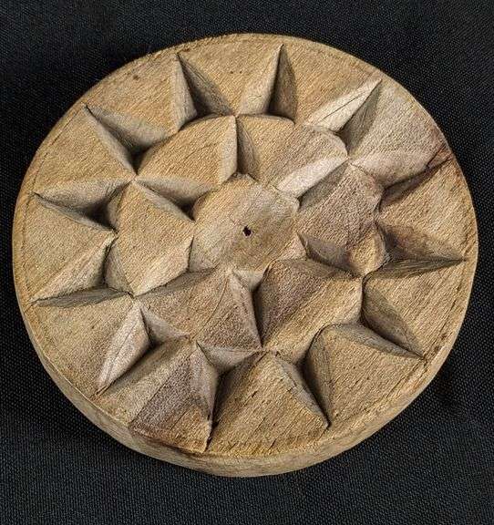 - ANTIQUE PRIMITIVE CHIP CARVED WOOD NORWEGIAN BUTTER PRINT MOLD STAMP