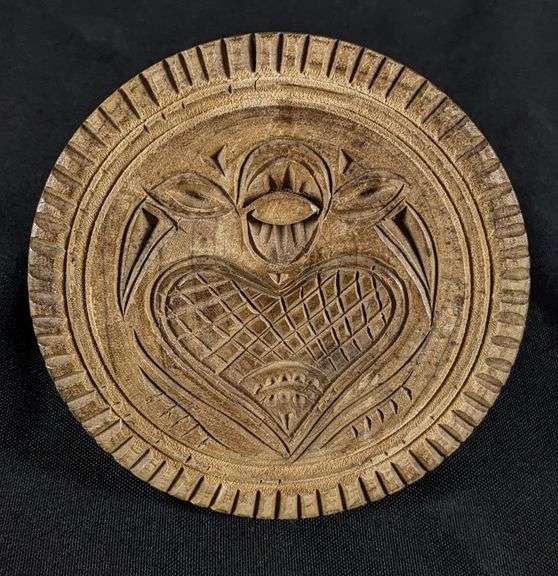 - ANTIQUE PRIMITIVE CARVED WOOD BUTTER PRINT MOLD STAMP HEART