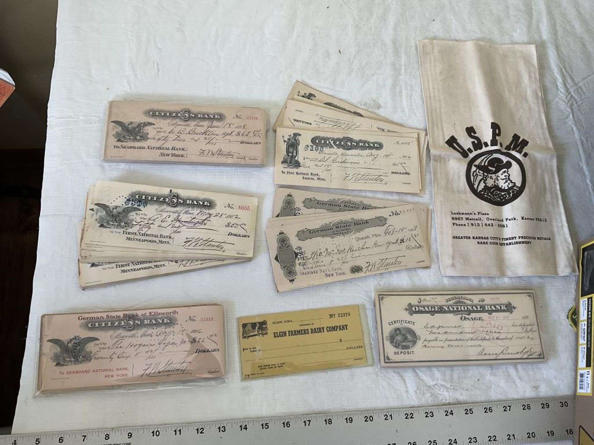 - Antique checks and bank bag