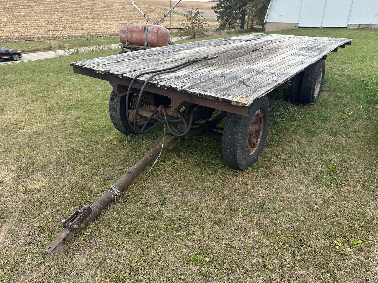 McKee Snolander 1101 3pt. Snowblower, Hydraulic Chute, S.N. 551; 102”x20’ Wood Truck Bed w/Truck Frame Running Gear, Air Over Hydraulic Dump, Dually Rear 9:00-20 Tires; 102”x16’ Wood Truck Bed w/Truck Frame Running Gear, Hydraulic Dump, Dually Rear 8R17.5 LT Tires; Feterl 10”x35’ PTO Auger on Transport; John Deere Van Brunt 10’ Grain Drill, Hydraulic, w/Grass Seed; Agro-Power 25KW Generator on Transport; New Holland 455 7’ Pull Type Sickle Mower; Farmwell 8 Row Pull Type Sprayer; 300 Gallon Fuel Barrel on Trailer w/Electric Pump.
