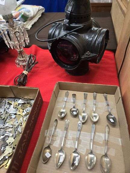 Sterling spoons • Railroad lantern • John Deere books & manuals