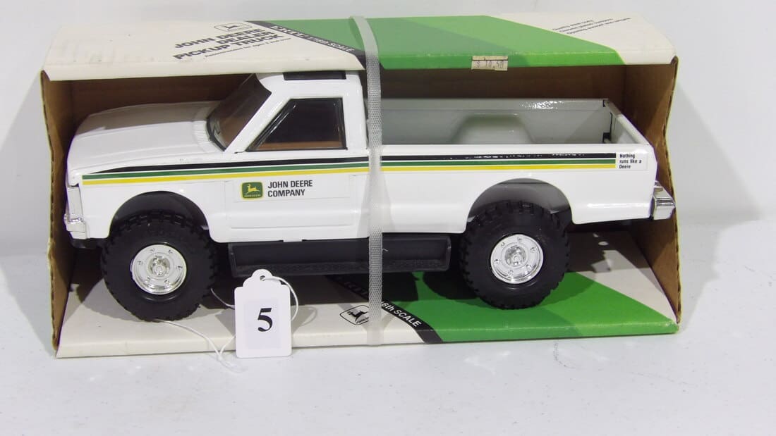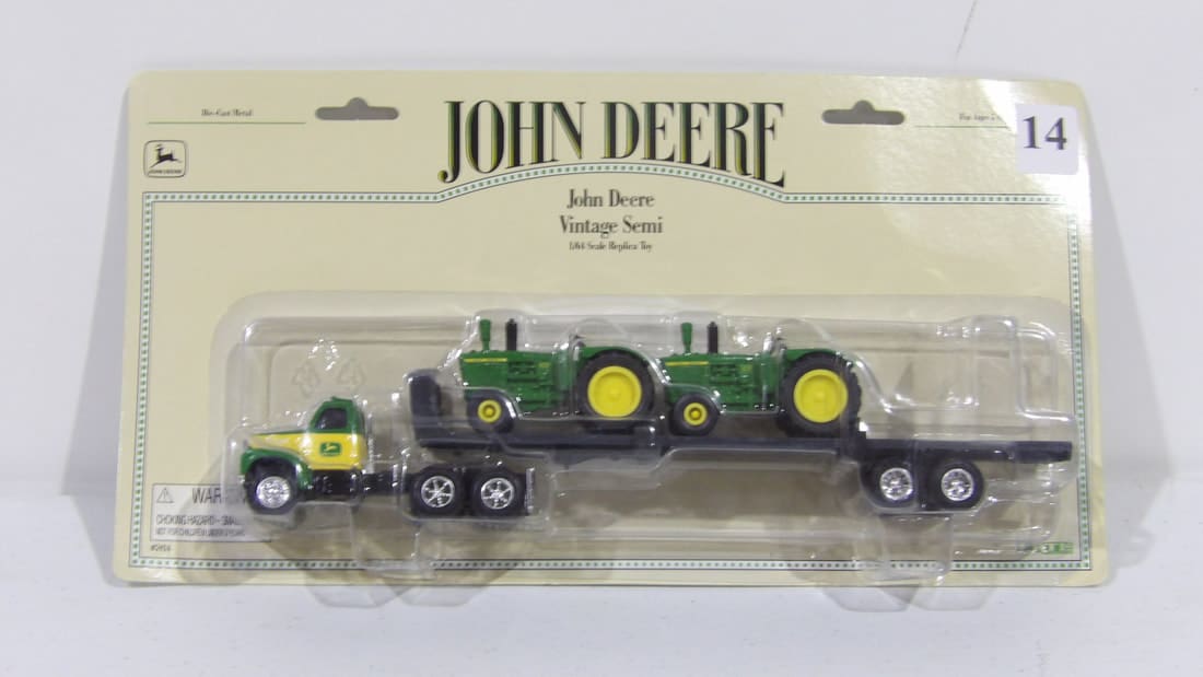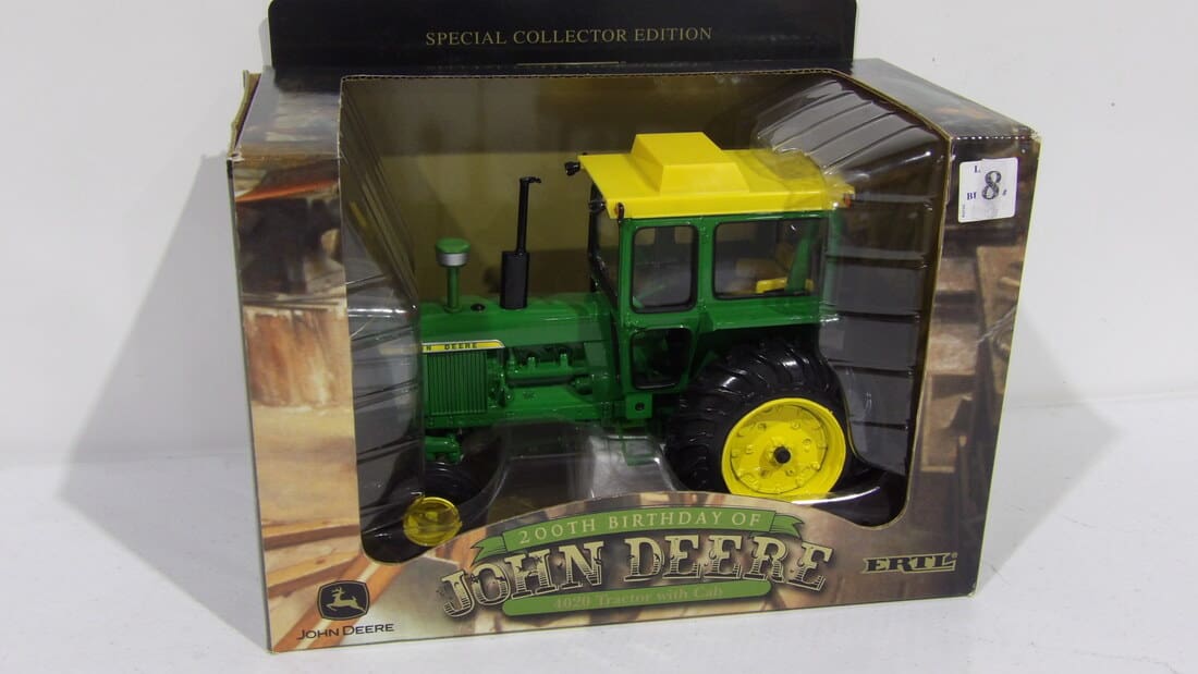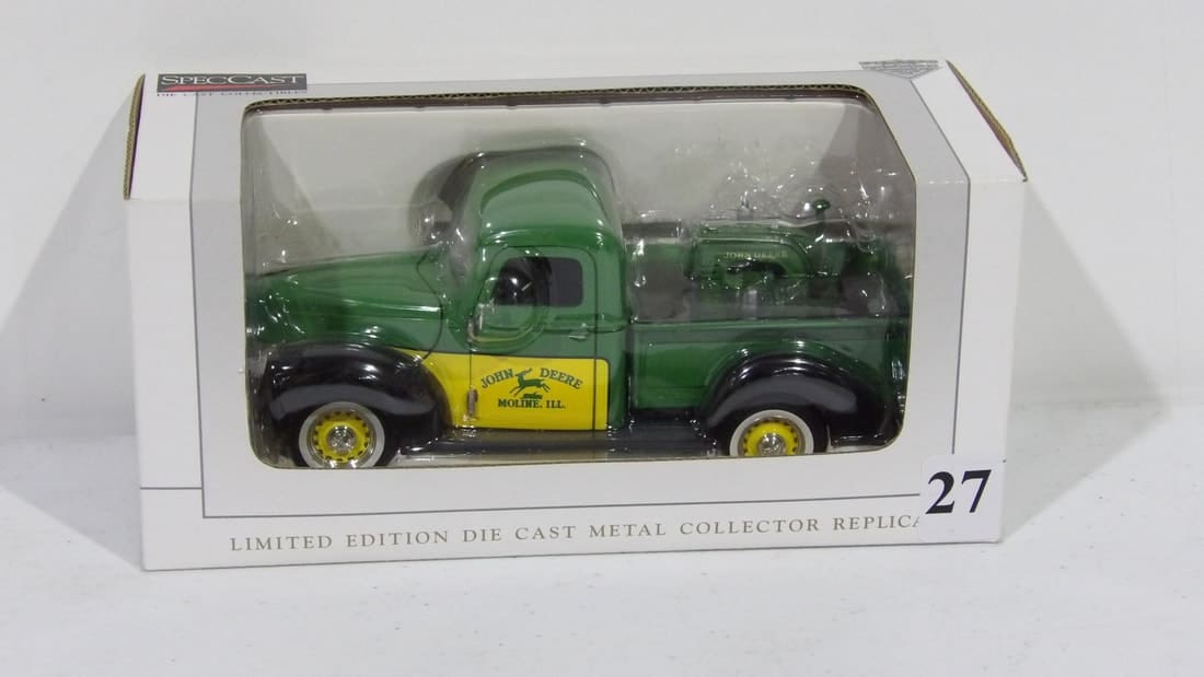 1/8, 1/16, 1/32, 1/64 Scale Tractors, Implements, Construction Toys & more. Majority are John Deere, Some Allis Chalmers, Ford, Die Cast Collector Cars, & more. Many Originals, Collectors, Special Edition, Spec Cast & More