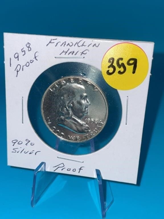 - 1958 Proof 90% Silver Franklin Half Dollar