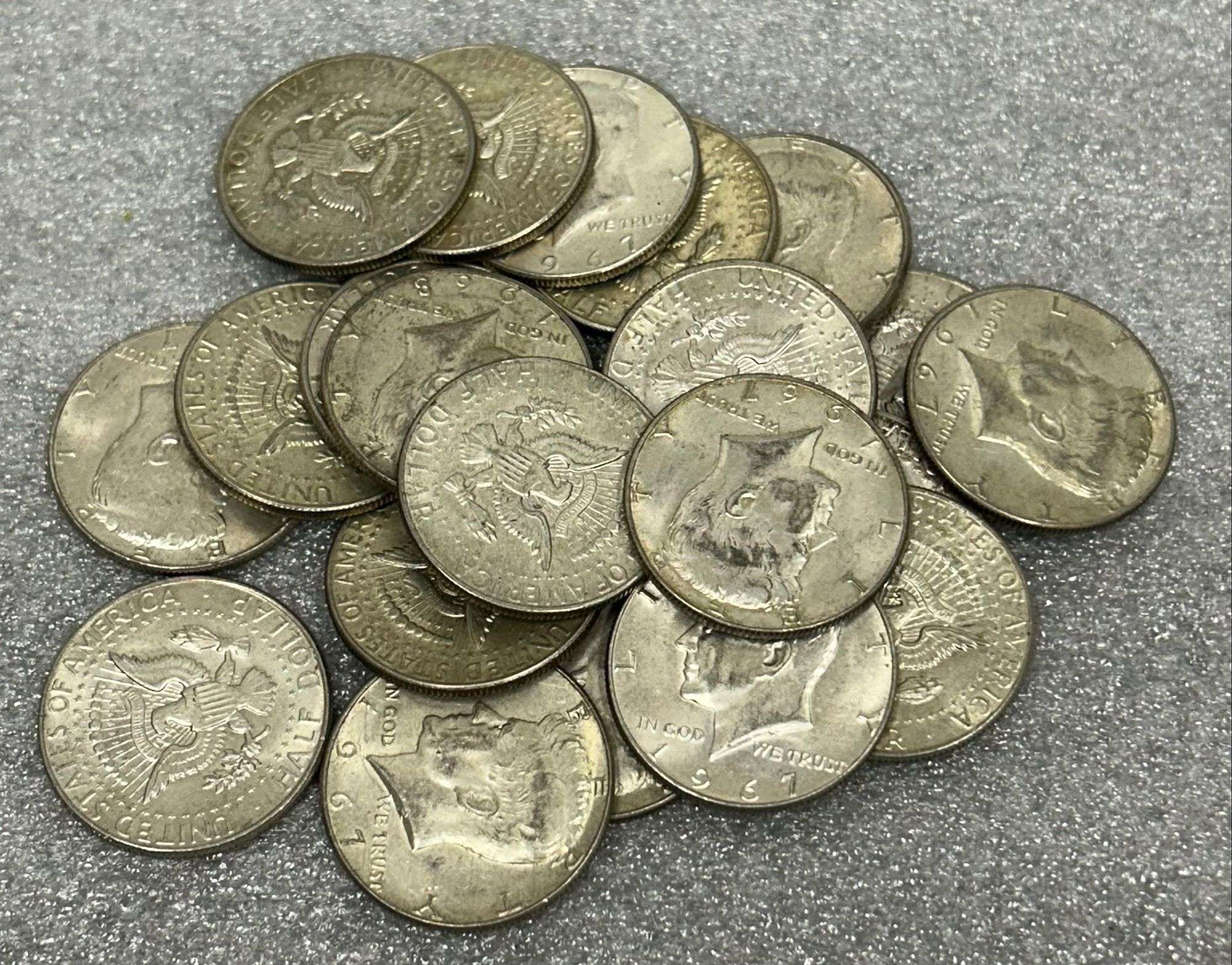 - Group of (21) 40% Silver Kennedy Half Dollars - Mixed Dates