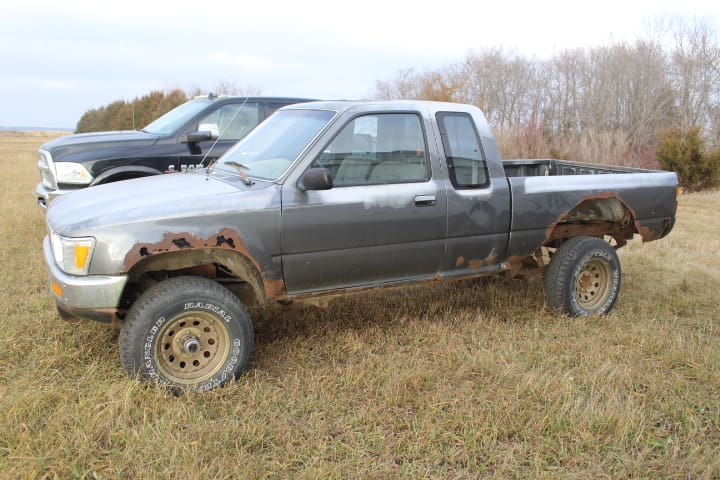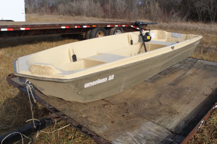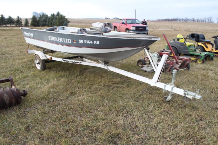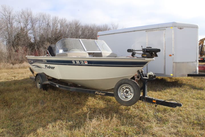 RAM PICKUP, TOYOTA PICKUP, KEYSTONE CAMPER, TRAILERS, BOATS: 2013 Dodge Ram 3500 Laramie Dually Long Box Pickup w/ Leather Int., Heated & Cooled Seats, 4WD, Backup Camera, 5th Wheel Turnover Ball & Pro Series 16K 5th Wheel Camper Hitch, 6.7L Dsl. Eng., Auto Trans., 171,000 Miles, Good Cond., VIN: 3C63RRJL6G559996; 1989 Toyota Xtra Cab PU w/ V6 Eng., Auto Trans., 4WD, Runs & Drives, 1999,000 Miles; 2010 Keystone Cougar 28’ 5th Wheel Camper w/ Slide Out, Full Kitchen w/ Refrig., Gas Stove, Range, Microwave, Table/Bed, Loveseat Couch & Bed, Bathroom, Upright Shower, Front Bed, Awning, AC, 10,180 GVWR, Winterized, Nice; 2017 H&H 16’ Enclosed trailer (7×14 w/ 2’ V Nose), 78”x81” Rear Opening, Rear Drop Gate, Side Walk Door, Has had Prev. Hail Damage, Primarily to Roof; 2010 PJ 8x’25’ GN Trailer (19’ Bed, 6’ Tail & Ramps), Flip over Ramps, 10,000 LB Tand. Dual Axles; 2003 Big Tex Road Runner 70CH Car Trailer w/ 3,500 LB Axles, Self Storing Ramps; 8’x10’ Yacht Club Tiltbed Snowmobile Trailer; Fischer 1890 Hawk Sport Boat w/ Merc. 135 Optimax Motor, Minnkota Terrova Elec. Trolling Motor, Lowrance HD55 Depth Finder, Fischer Trailer, Good Cond., Winterized; Mirro Craft Striker LTD Alum. Boat, SD 5164, Alum. Shore Land’r Trailer; American Sun Dolphin 12 Poly Boat w/ Minnkota Endura Trolling Motor, 12’;