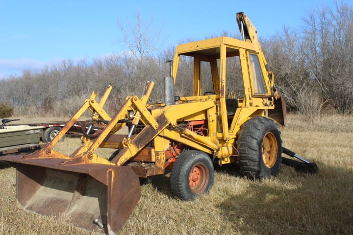 JD 2755 TRACTOR, CASE 580B BACKHOE TRACTOR, YAMAHA ATV: JD 2755 MFWD Tractor w/ SG Cab, Good 15.5-38 Tires, 3 Pt., 540 PTO, 2 Hyd. + Ext. Outlet, Quad Trans., #245 Loader w/ 7’ Bucket, SN: L02755F615455, (1987); Bale Spear with JD #245 Loader Mts.; JI Case #580B Backhoe Tractor w/ Loader, 6.5’ Bucket, 35-580B Backhoe & 24” Bucket, Tach Shows 6,097 Hours, Fuel Gauge Does Not Work; Yamaha #350 ATV w/ 4128 Miles, 4WD, Not Titled;