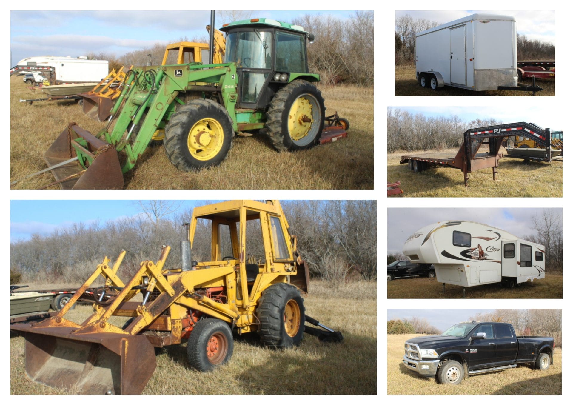 2013 Dodge Ram 3500 Laramie Dually Pickup, 2010 Keystone 28’ 5th Wheel Camper, Fischer 1860 Hawk Sport Boat, Mirro Craft Alum. Boat & American Sun Dolphin Boat, 2017 H&H Enclosed Trailer, Big Tex Road Runner Car Trailer, PJ 8’x25’ GN Flatbed Trailer, JI Case 580B Backhoe Tractor, JD 2755 MFWD Tractor, JD 535 Round Baler, NH #116 Hay Bine, 50+ H&W & Priefert Livestock Corral Panels, JD Z445 Zero Turn Mower, Cub Cadet LTX 1042 Lawn Tractor, Various other Items of Misc. Equipment, 32 Grass Round Bales & More!