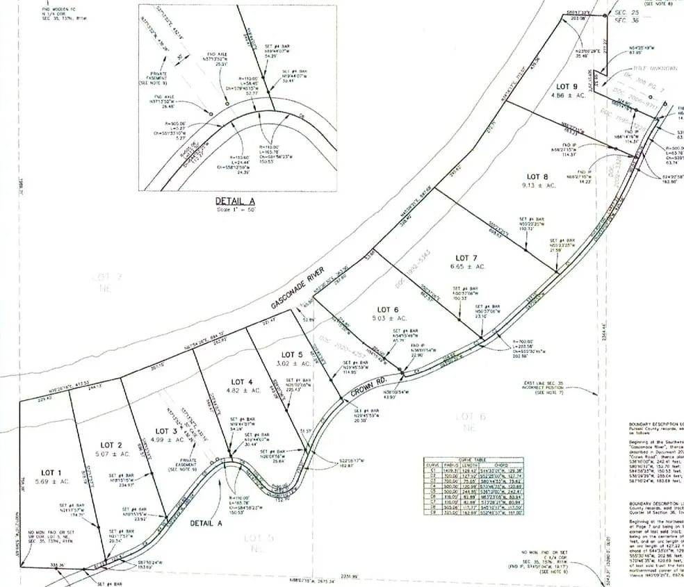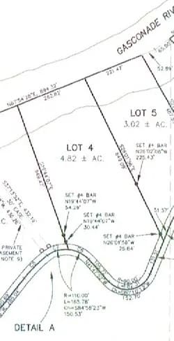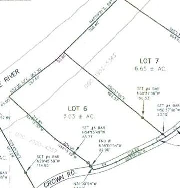 Each lot has some frontage on Crown Road and the north property line is the Gasconade River.