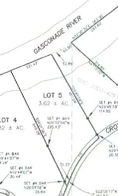 Each lot has some frontage on Crown Road and the north property line is the Gasconade River.