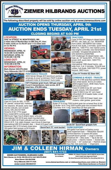 JIM & COLLEEN HIRMAN FARM AUCTION, MONTEVIDEO MN, ONLINE ONLY