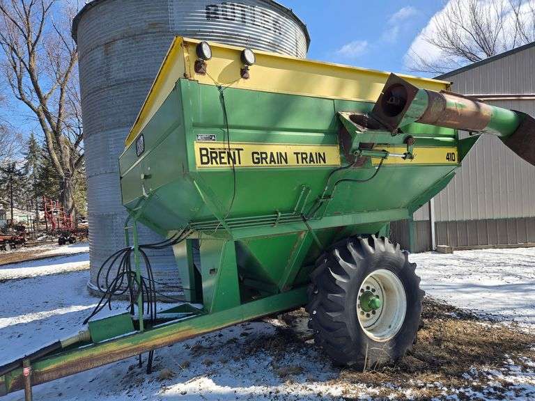 International 480 20 ft tandem disk • Brent 410 grain cart