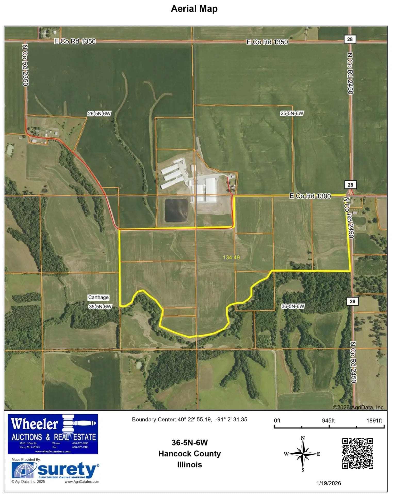Make plans now to participate in this upcoming Hancock County land auction. 195+/- acres will be offered in two tracts located in Sections 25, 26, 35 & 36 of Carthage Township, Hancock County, IL. These tracts offer productive tillable farmland with a manure lease from an adjacent swine facility. The farm is situated with close access to the 336-expressway making this is an auction that you will not want to miss!