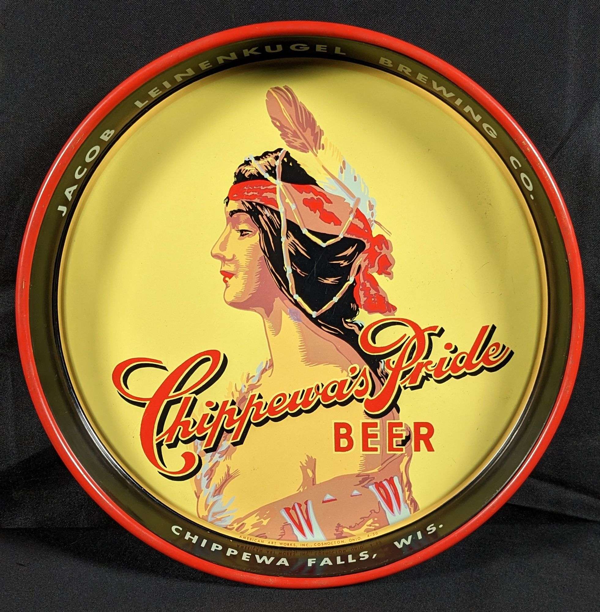 - 1950 JACOB LEINENKUGEL BREWING CO CHIPPEWA'S PRIDE BEER TRAY CHIPPEWA FALLS WISCONSIN