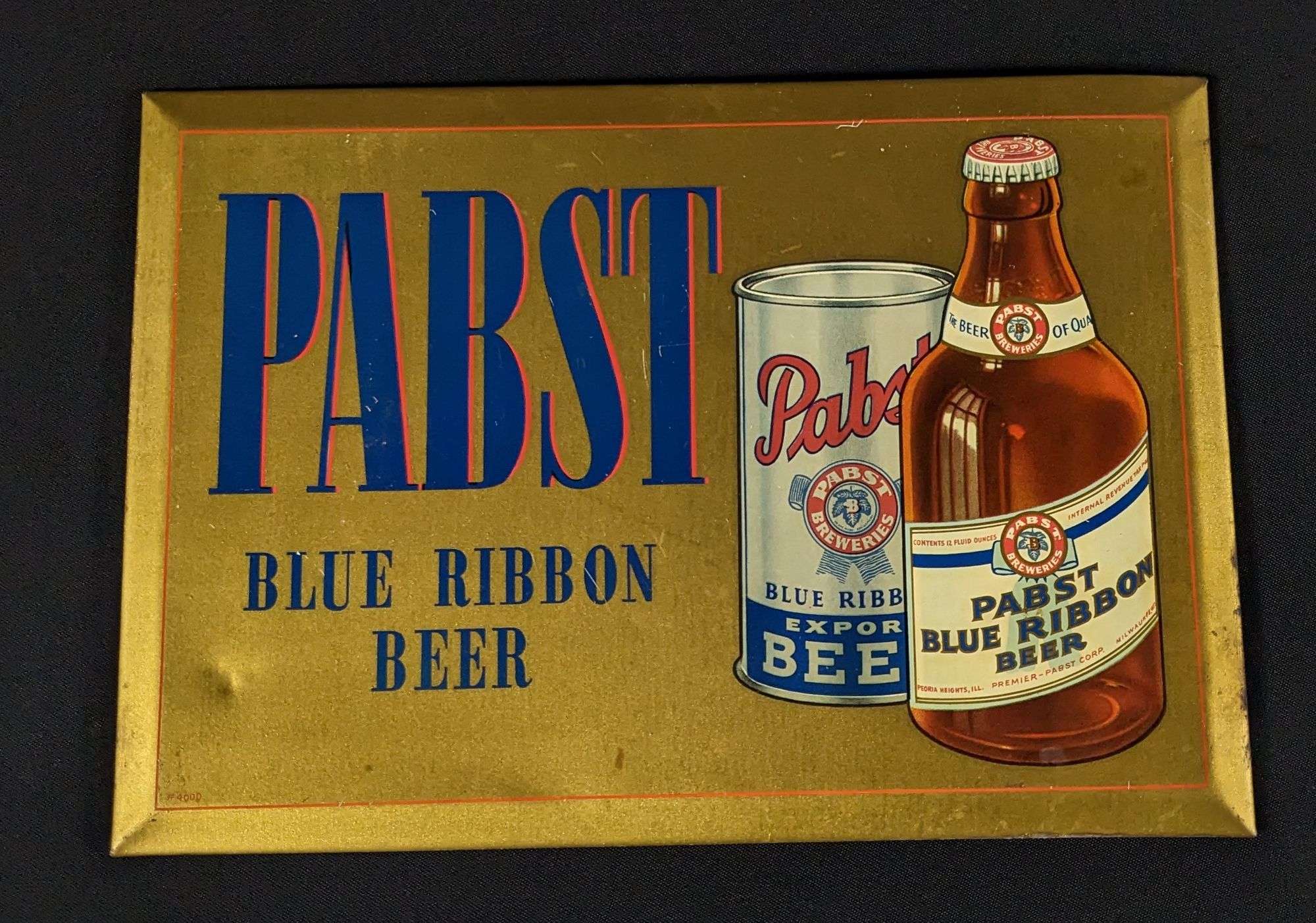 - TOC TIN BEER SIGN PABST BLUE RIBBON BEER BOTTLE & CAN MILWAUKEE WISCONSIN
