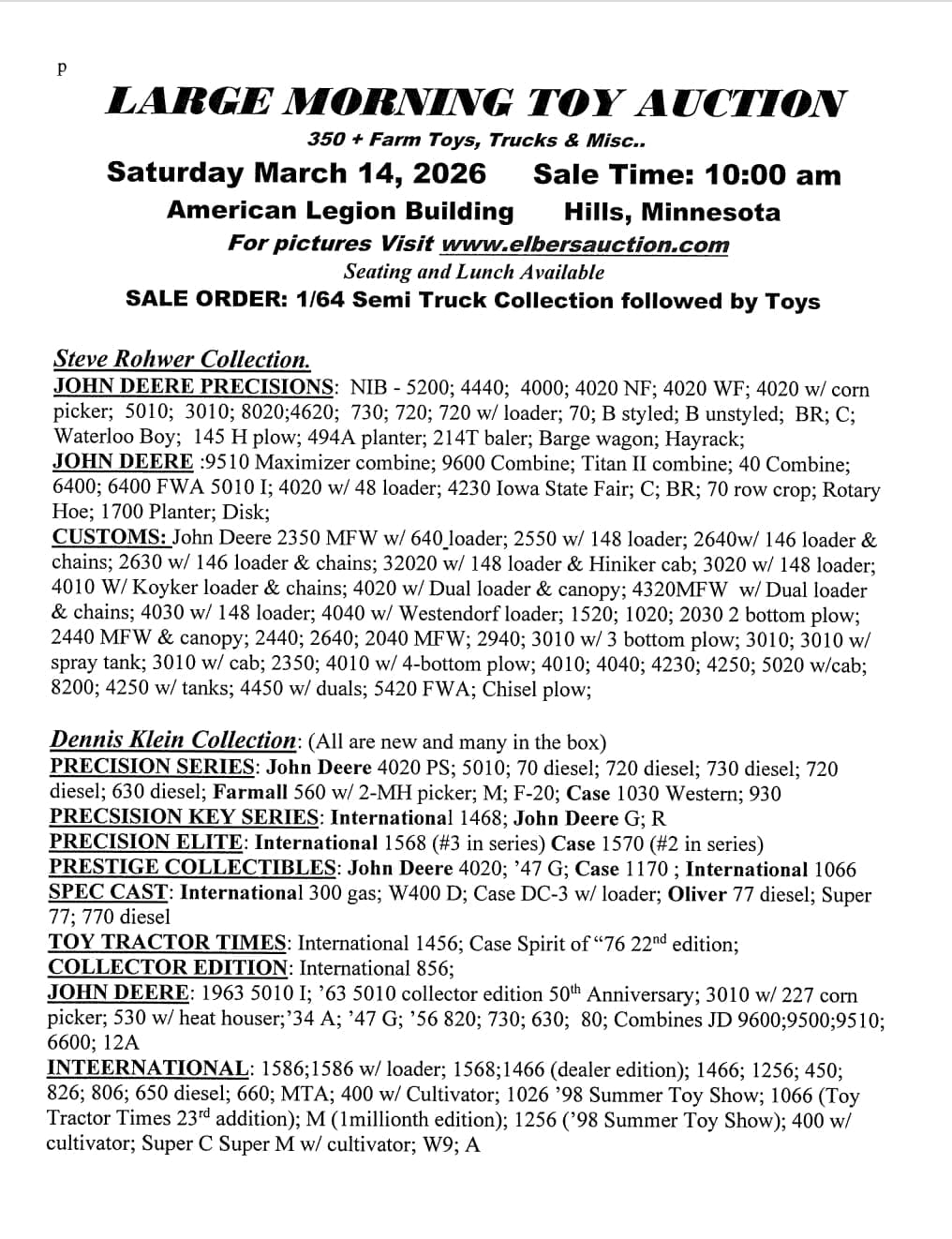 Disclaimer: Please confirm with Elbers Auction Service the auction details. Auction time, location, terms, item descriptions and items on the auction are subject to change. Auction items on each auction may have different locations. Please verify all details regarding the auction on the listing company's website or with listing company as all auction information is subject to change at any time. Please confirm with the Auctioneer before the day of Auction any information that is important to you. SalesUSA.com is not responsible for any changes, errors, or omissions. View our Disclaimer, Terms of Use and Privacy policies.