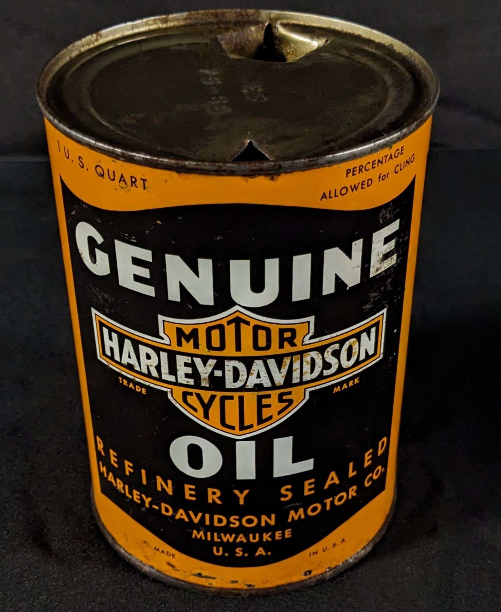 - QUART OIL CAN GENUINE HARLEY DAVIDSON MOTORCYCLE MILWAUKEE WISCONSIN