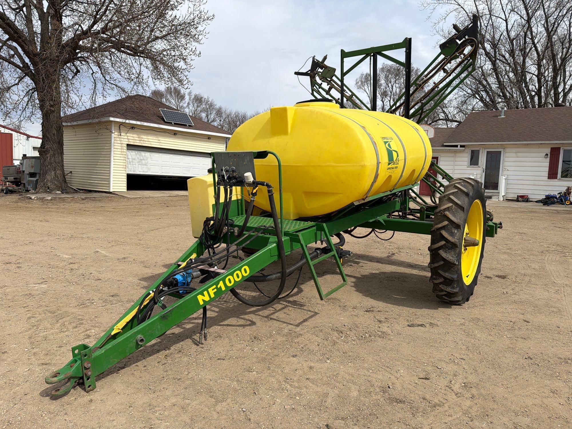 Sprayer: Specialties 1000 Gallon Pull Type Sprayer—60ft booms, hydraulic pto pump, controller included, foam tank, 12.4-38 tires