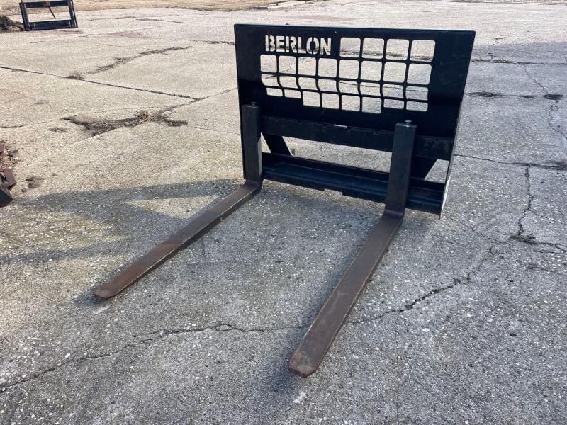 Loader Attachments: 2016 Behlen Loader Pallet Forks—48” forks(fits CIH L765 loader): 3 prong loader bale spear—fits miller PL2 loader: