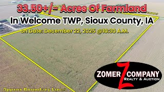 Live/Online Public Farmland Auction Of A 33.5+/- Acre Tract Of High Caliber Farmland In Welcome TWP, Sioux County, IA–Located Southwest Of Hull, IA!