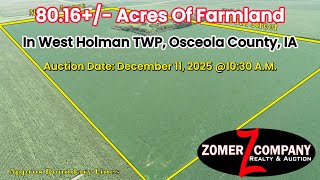 Live Public Auction Of 80.16+/- Acres Of Farmland Located In West Holman TWP, Osceola County, IA Located Southwest Of Sibley, IA!