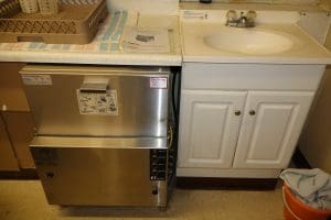 Under‑counter single‑rack sanitizer (installed 2018)