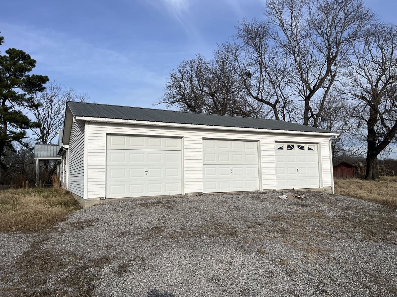Tract 1 features a private homesite located near the end of a quiet, dead-end road, sitting on just over 5 acres. This tract includes an approximately 1,810 square foot residence, a large detached 864 square foot three-car garage, and an approximately 1,800 square foot shop building. While the home requires work, the value of this tract lies in its location and setting, making it well-suited for renovation or a new build.