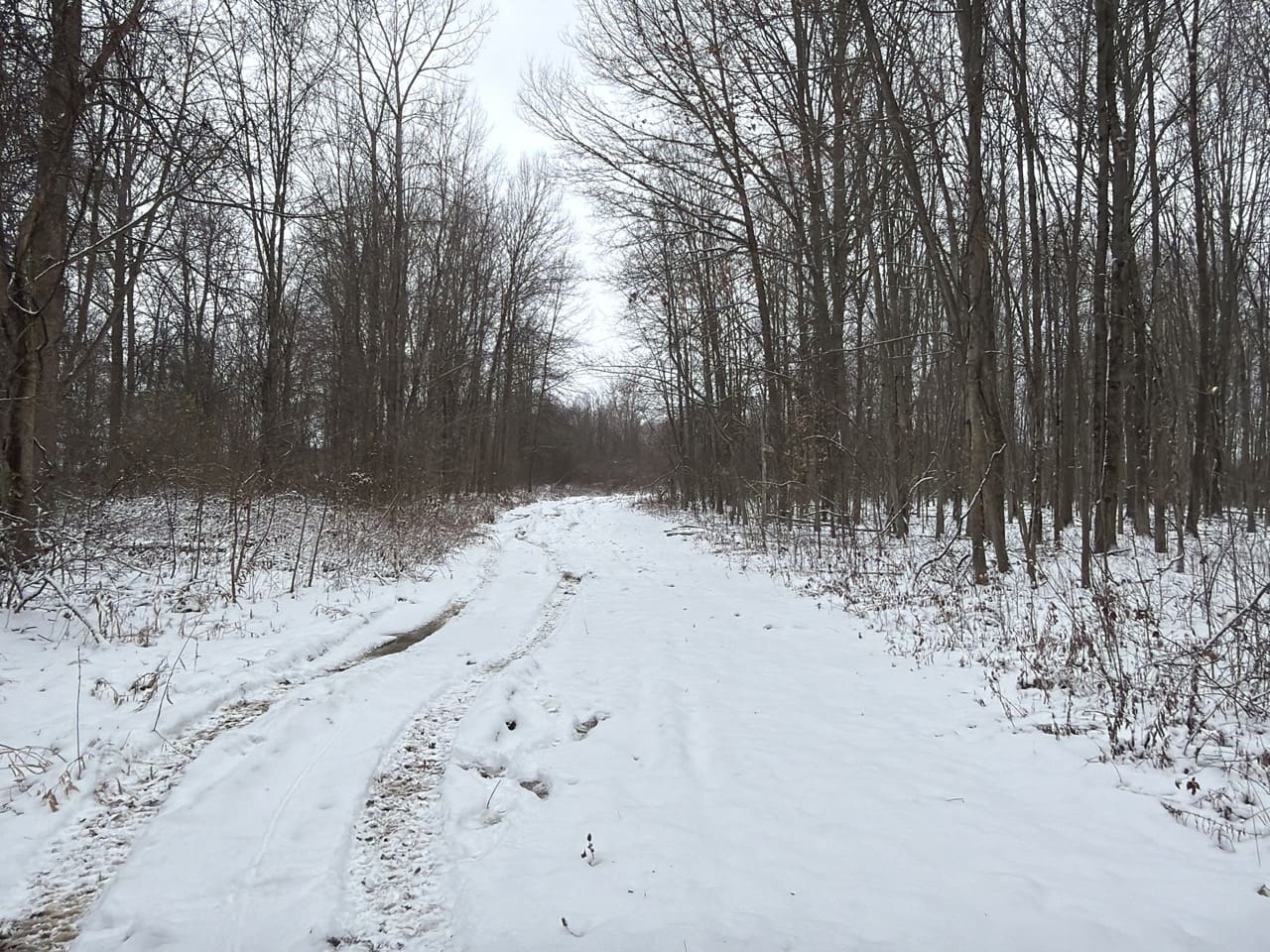 The remaining acreage is wooded and provides a diverse natural habitat. The timbered areas show strong signs of deer and turkey activity, making the property well suited for hunting and wildlife observation. The combination of open ground and cover helps create natural travel corridors and edge habitat that are commonly sought after by recreational landowners.