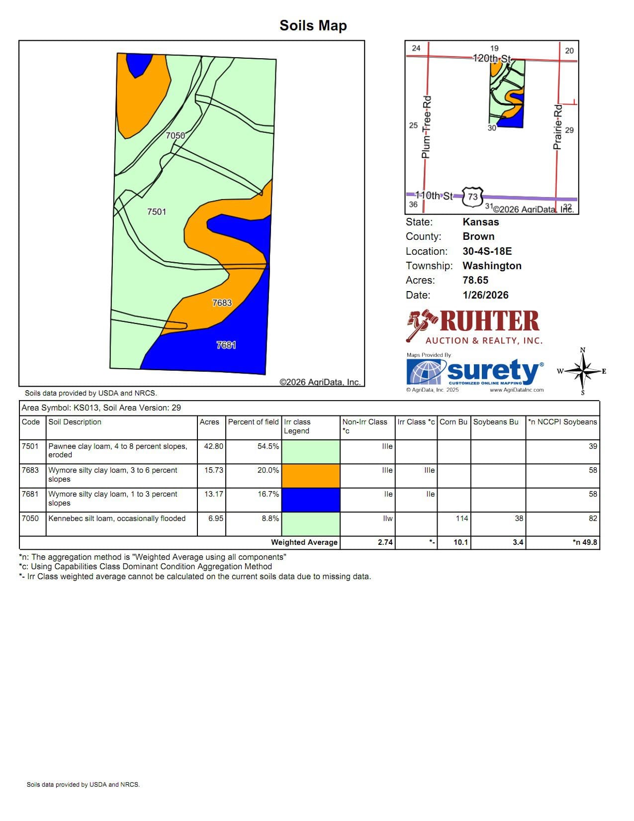 Legal Description: W 1/2 NE 1/4 Section 30, Township 4 South, Range 18 East, Brown County, Kansas