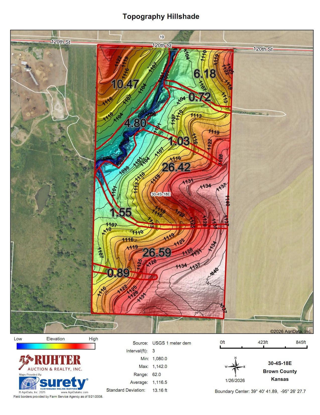 A payment equal to 10% of the purchase price is due the day of the auction. Kansas Secured Title will perform the title insurance and closing. Preliminary title work is availabe. The remaining balance will be due on or before April 21, 2026, and must be paid by certified funds or direct wire transfer to Kansas Secured Title. Possession for agricultural purposes will be granted with earnest money deposit.