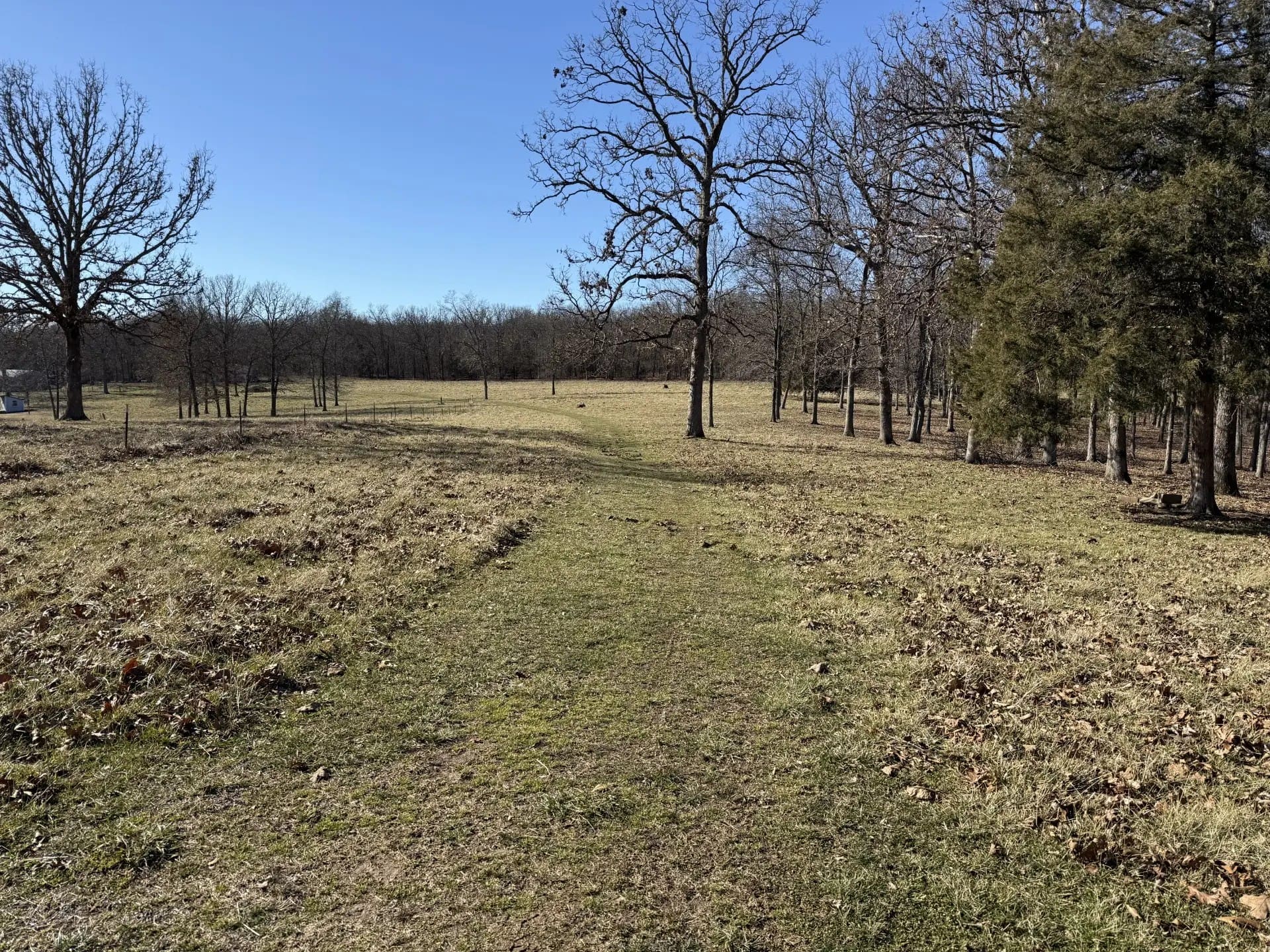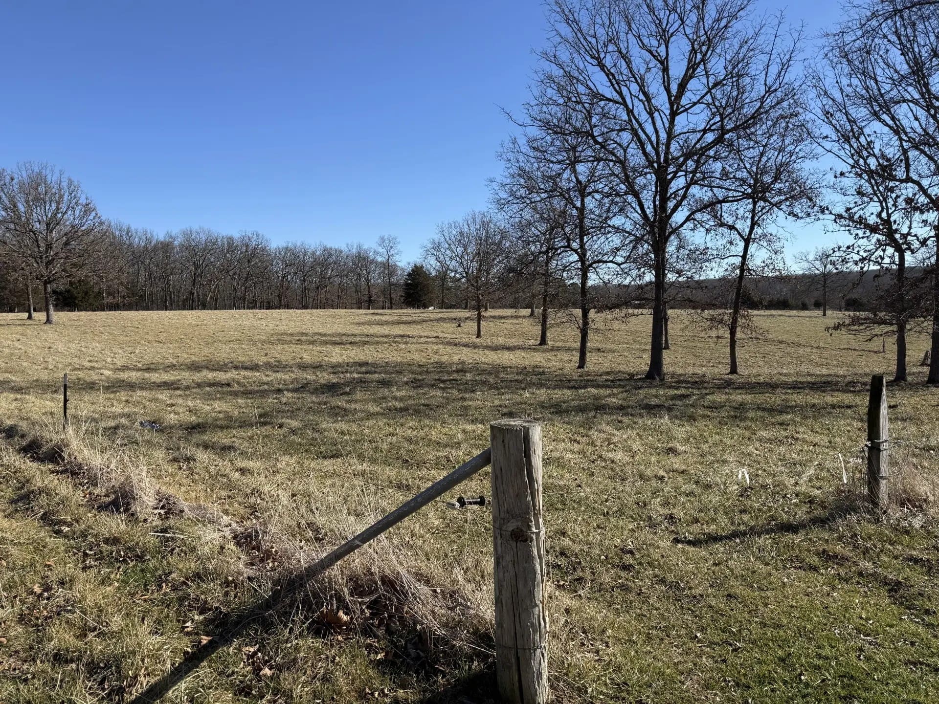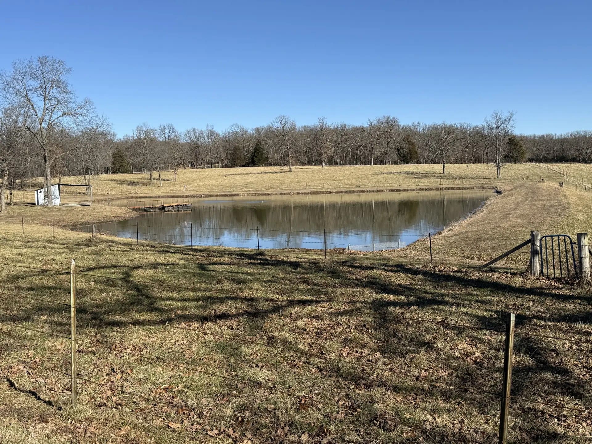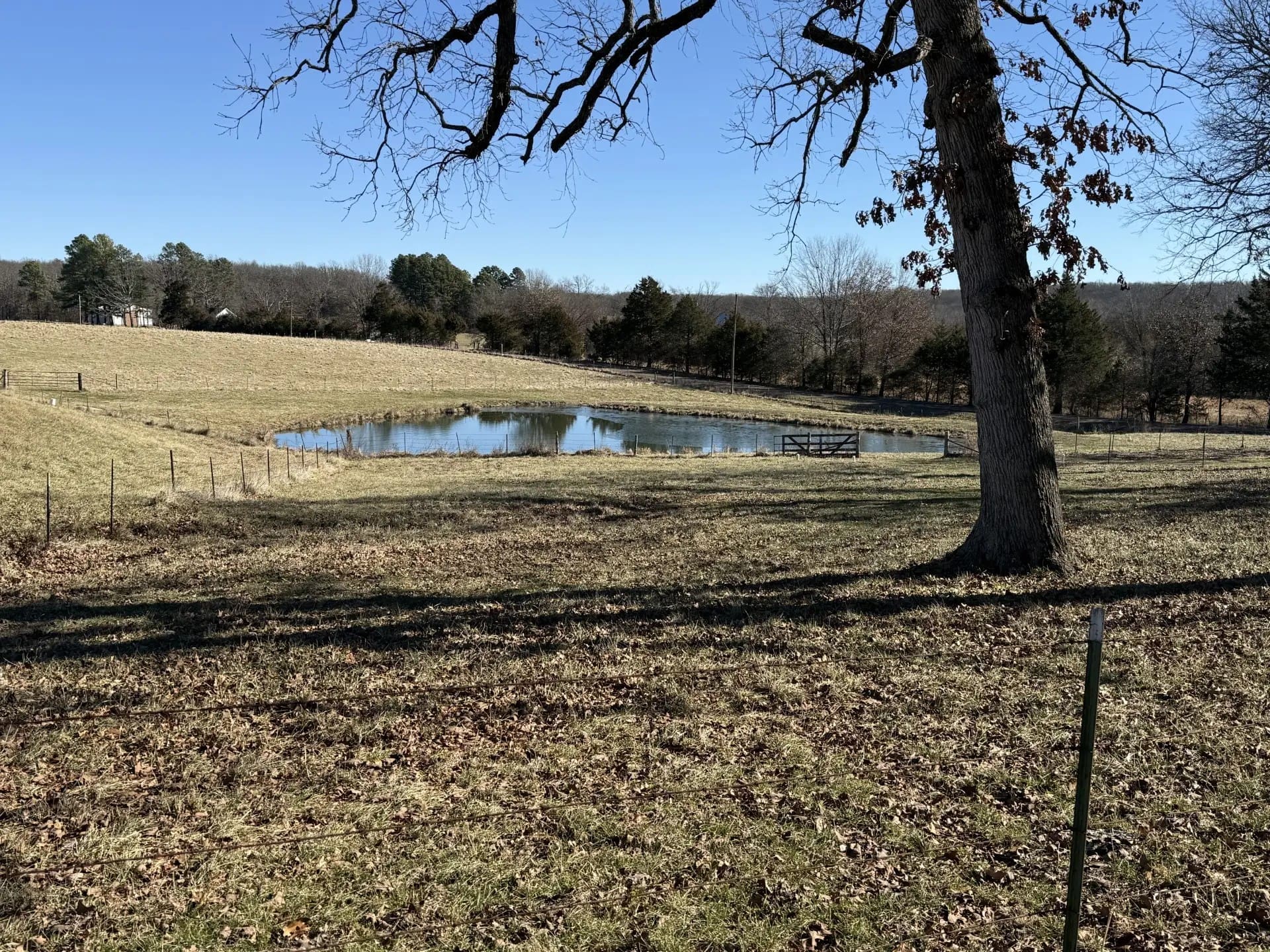 Consists of approximately 44 acres of rolling permanent pasture and mature timber, it has frontage and direct access on the southeast side from Highway C and it wraps around Tract One on the north and west sides. It is fenced and cross-fenced and has a permanent tire drinker and several water hydrants on it from the well on Tract One. (In the event the two tracts sell separately there will be no agreement for the owner of Tract One to furnish water to the owner of Tract Two.)